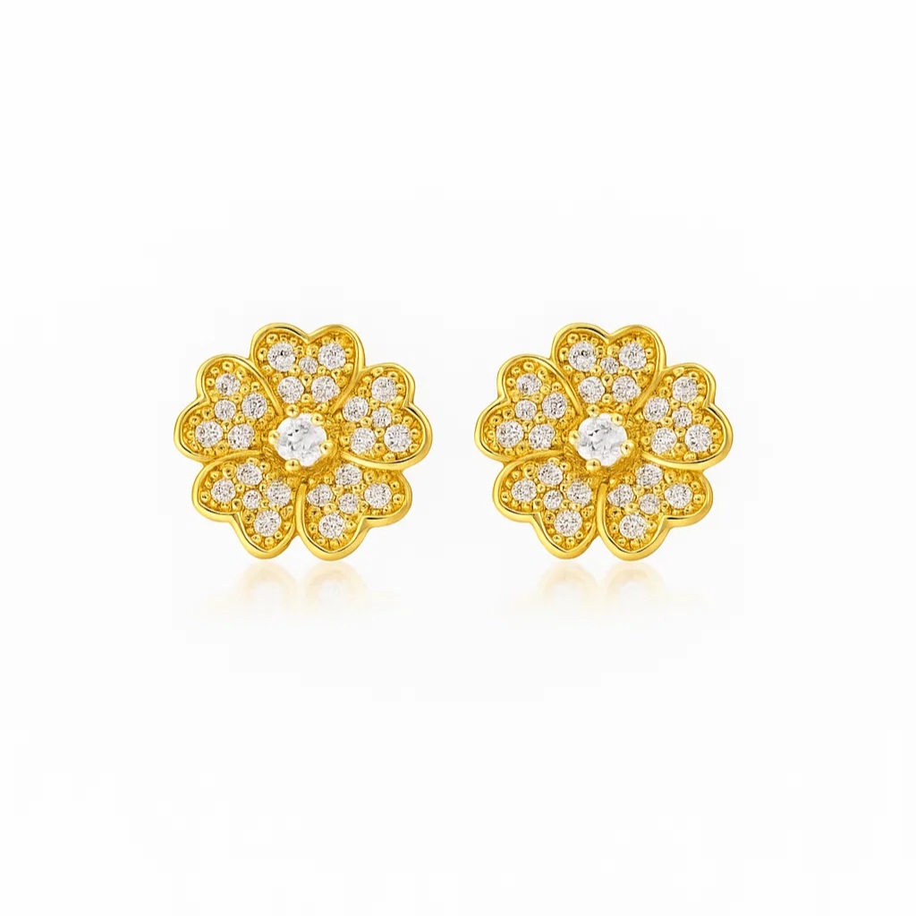 O Brinco com Design de Flor Cravejado de Zircônia, folheado em Ouro 18k, é uma escolha versátil que pode ser usada em diversas ocasiões. Seja para um evento especial, um encontro romântico ou para adicionar um toque de brilho ao seu visual cotidiano, este brinco certamente se destacará com sua beleza encantadora.
