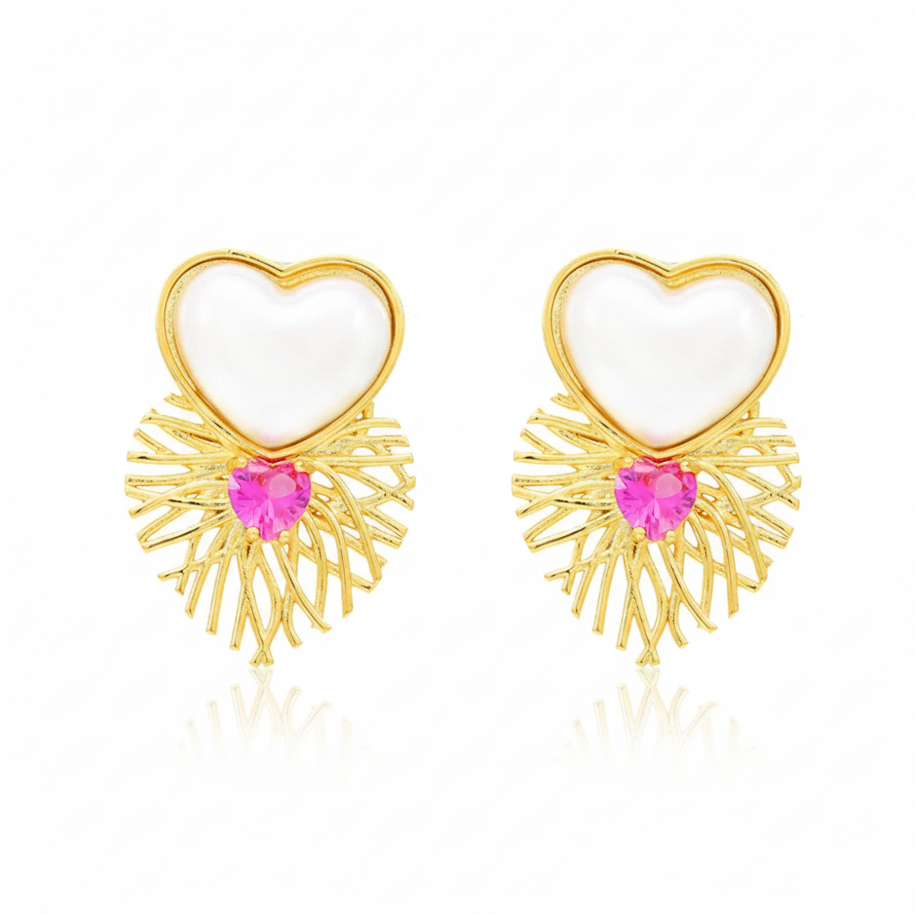 Delicadeza e encanto em uma peça única! O Brinco Design Coração combina a sofisticação da madrepérola com o brilho vibrante das zircônias coloridas, criando um acessório romântico e cheio de personalidade. Folheado a ouro 18k, ele oferece um acabamento luxuoso e atemporal que valoriza qualquer look.