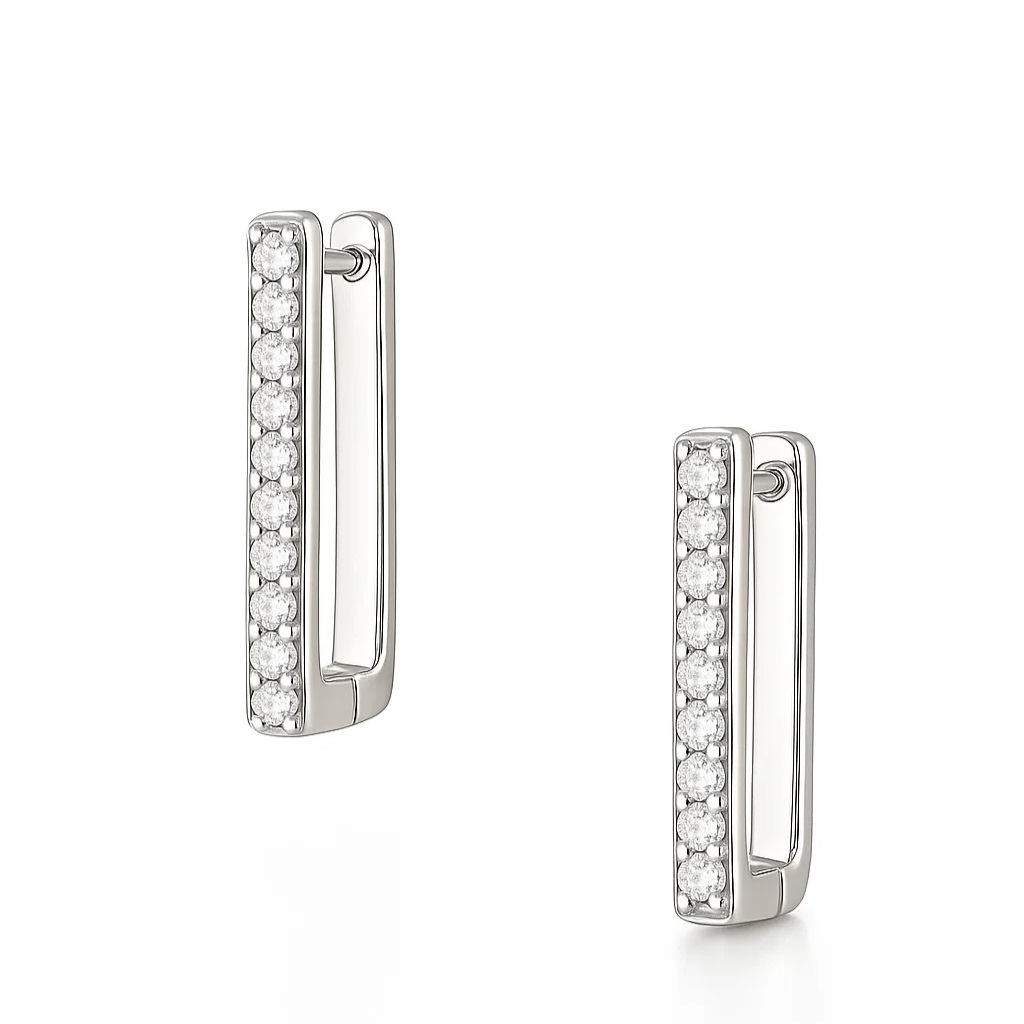 Sofisticação com um toque moderno! O Brinco Retangular com Zircônias, banhado em ródio branco, é uma peça elegante e cheia de estilo. Seu design retangular, cravejado com zircônias brilhantes, destaca-se pelo acabamento impecável e pelo brilho deslumbrante, ideal para quem busca um acessório versátil e sofisticado.