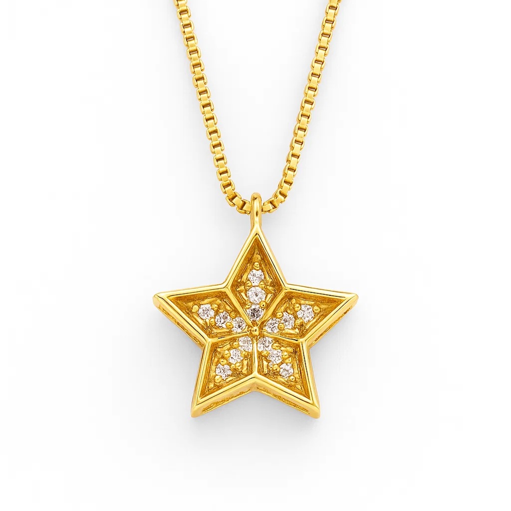 Brilhe como uma estrela! O Colar com Pingente Estrela, folheado a ouro 18k, é uma peça delicada e encantadora, perfeita para iluminar o seu look. Com um design minimalista e acabamento impecável, este colar combina sofisticação e versatilidade, tornando-se ideal para qualquer ocasião.