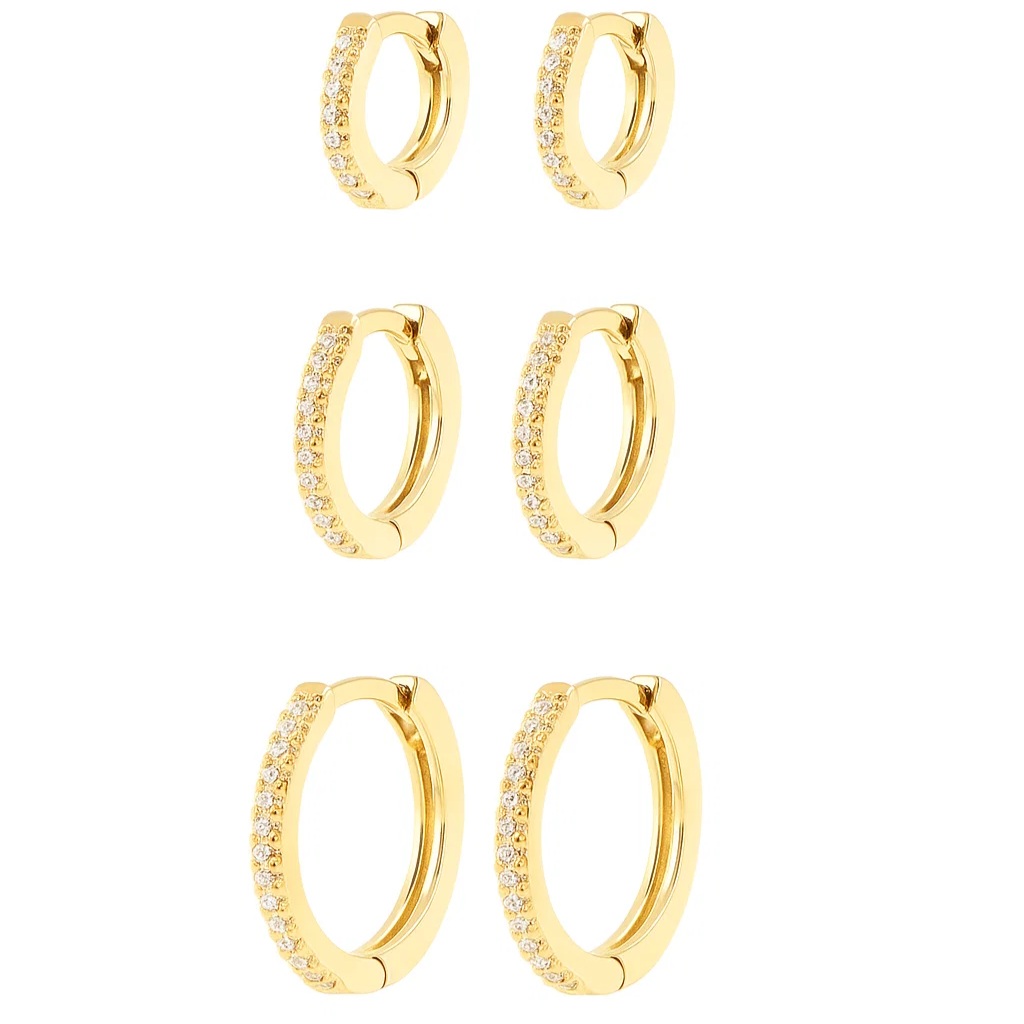 Delicadeza e brilho em cada detalhe! Este lindo trio de argolinhas é a escolha perfeita para quem ama elegância com um toque moderno. Repletas de zircônias brilhantes que refletem a luz de maneira encantadora, essas peças são folheadas em ouro 18k, garantindo sofisticação e durabilidade.