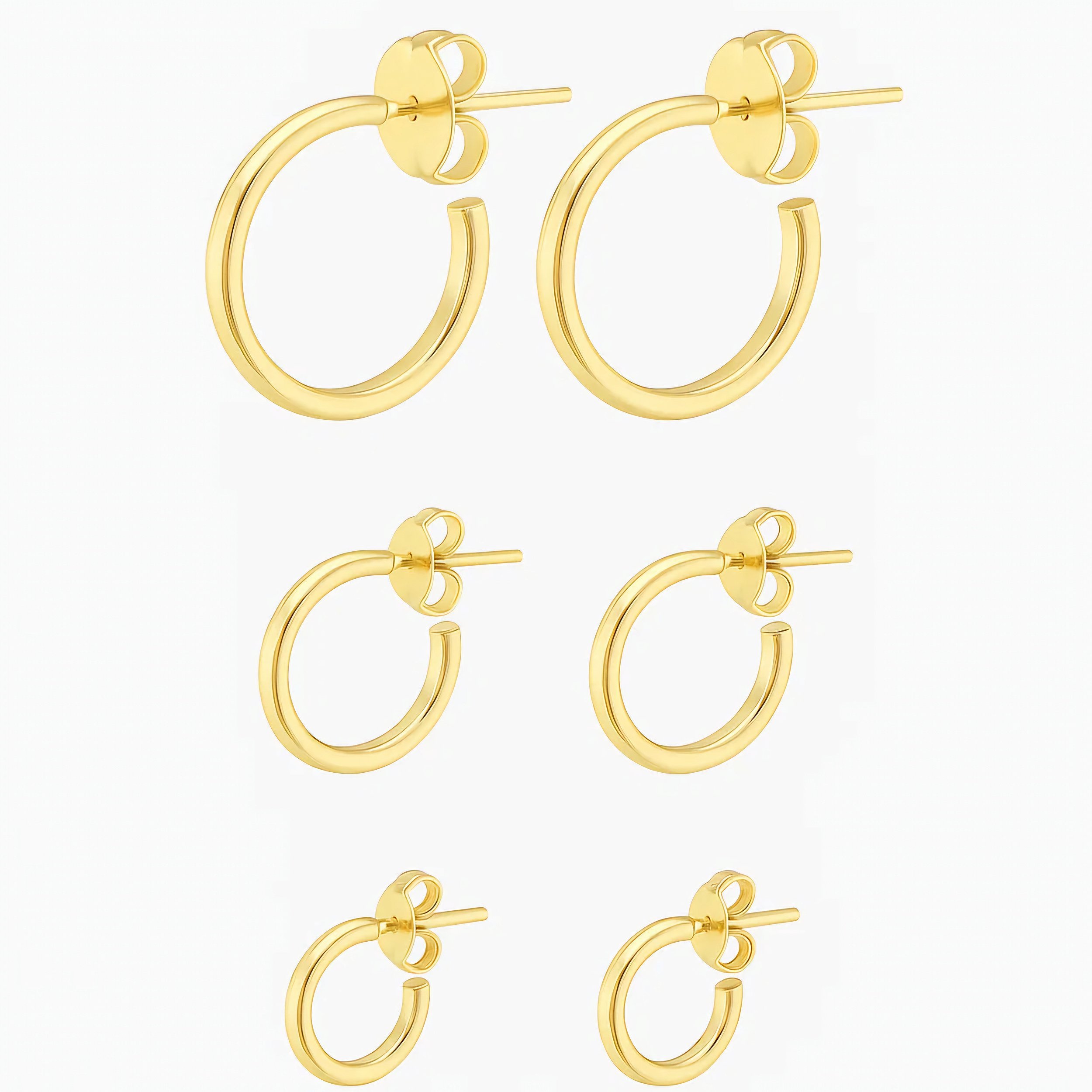 Semijoia perfeita e essencial para tornar seu look ainda mais lindo, requisitado e atraente. Trio de brincos de argolinhas finas e lisas são lindíssimas, ideal para você que ama joias minimalistas folheadas em ouro 18k!